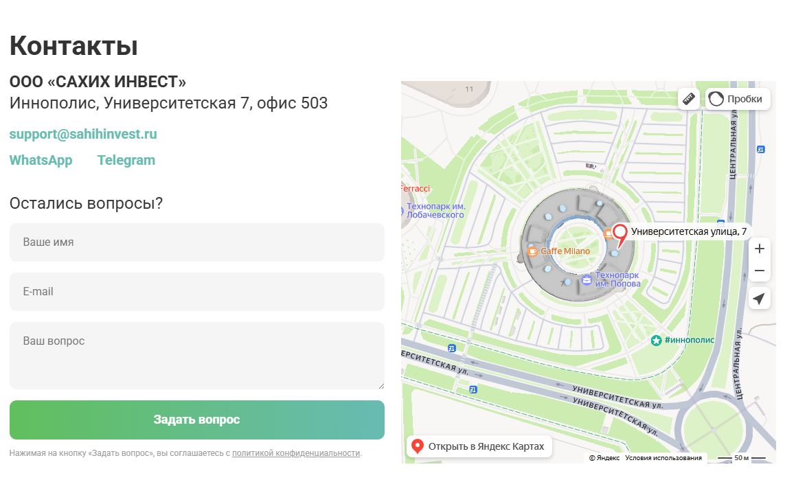 Наличие офиса компании в Иннополисе, подтвержденное онлайн-картами, тоже кажется вполне серьезным доказательством работы сервиса, однако это все еще не делает его очень полезным.