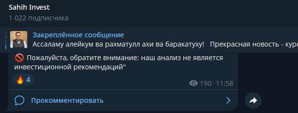 • в телеграмм канале Sahih Invest очень низкая активность, которая не соответствует заявлениям создателей о широкой клиентской базе.