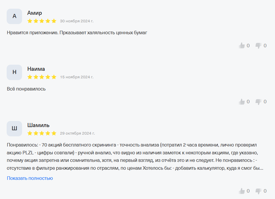 В основном пользователи Sahih Invest довольны тем, что они получили в подписке. Многие указывают, что опираются на данные из приложения при формировании своего портфеля.