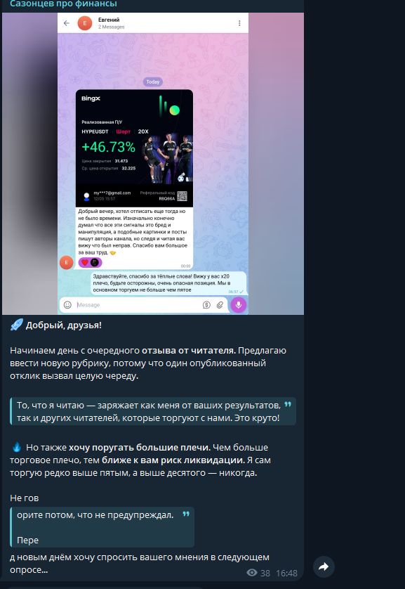 На момент подготовки обзора каких-либо мнений о работе каналов Sazoncevv нет. Но есть упоминания в сети с предупреждениями о мошенничестве инвестора.