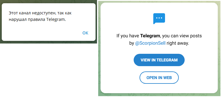 Покупка на площадке устроена не самым привычным образом. Из-за того, что основные аккаунты админов регулярно удаляют модераторы по причине нарушения правил Telegram, владельцы перевели все продажи в телеграм-бот Scorpsell Bot.