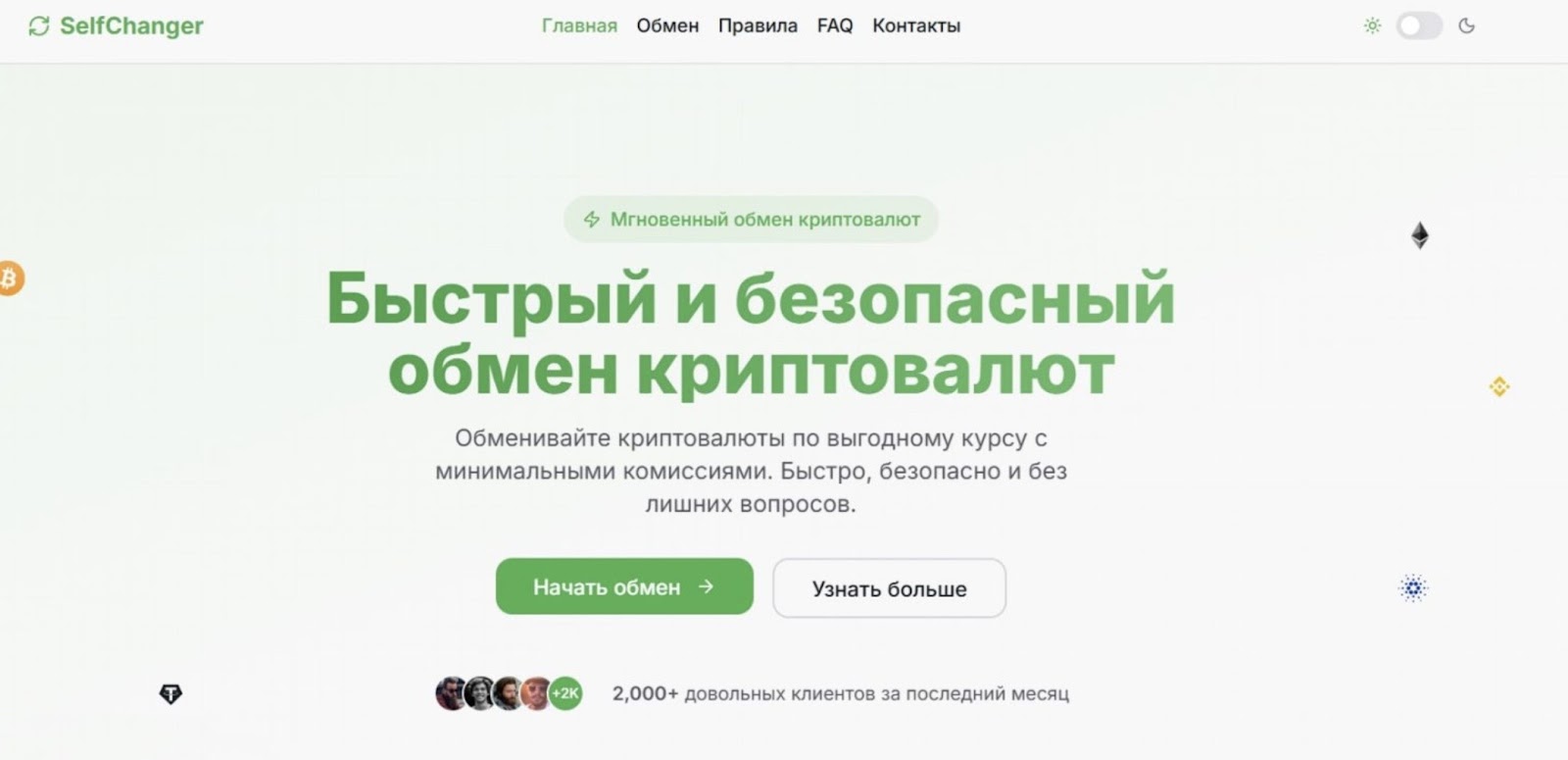 Selfchanger — это обменный сервис, который работал под лозунгом самого безопасного и быстрого, каким его представляли создатели. По их же словам, проект уже давно обслуживает крипто сообщество.