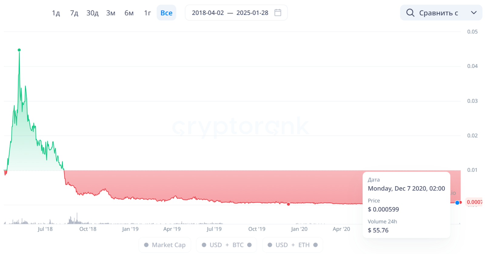 В прошлом капитализация достигала 2.7 млн долларов, а общее количество токенов составляло около 2,7 миллиарда. На данном этапе эта информация уже не актуальна