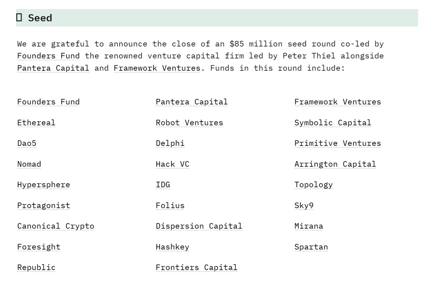 На момент написания обзора был проведен первый раунд Sentient Foundation Crypto. При этом в финансировании платформы приняли участие такие проекты, как Arrington Capital, Hypersphere, IDG, Topology, Protagonist, Folius и многие другие. Общее количество участников — более трех десятков.