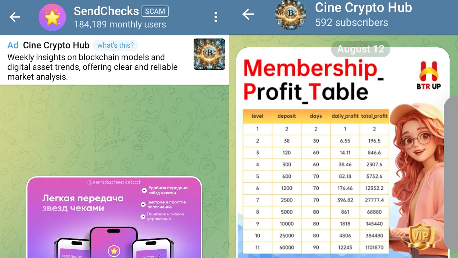 Однако предложенные каналы выглядят сомнительными, из-за чего есть риск потерять средства.