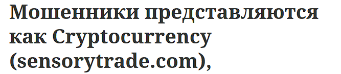 Мнений об этой платформе практически нет. Создается впечатление, что в реальном крипто мире о ней никто не знает. Все, что нам удалось найти – обвинения Cryptocurrency в скаме некоторыми ресурсами. Они называют биржу мошеннической и не настоящей:Также в обзорах отмечают, что сайт платформы Sensorytrade сделан по типичному шаблону. И что даже его логотип позаимствован у другой мошеннической крипто биржи. Критикуют они платформу и за закрытость информации. По словам обзорщиков, так поступают только фальшивые ресурсы.