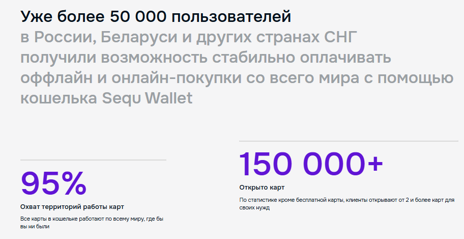 При этом заметим, что работа платформы Sequwallet ru началась в январе 2026 года и на момент обзора прошло менее двух месяцев. Разработчики утверждают, что за данный небольшой период было открыто свыше 150 тысяч карт.