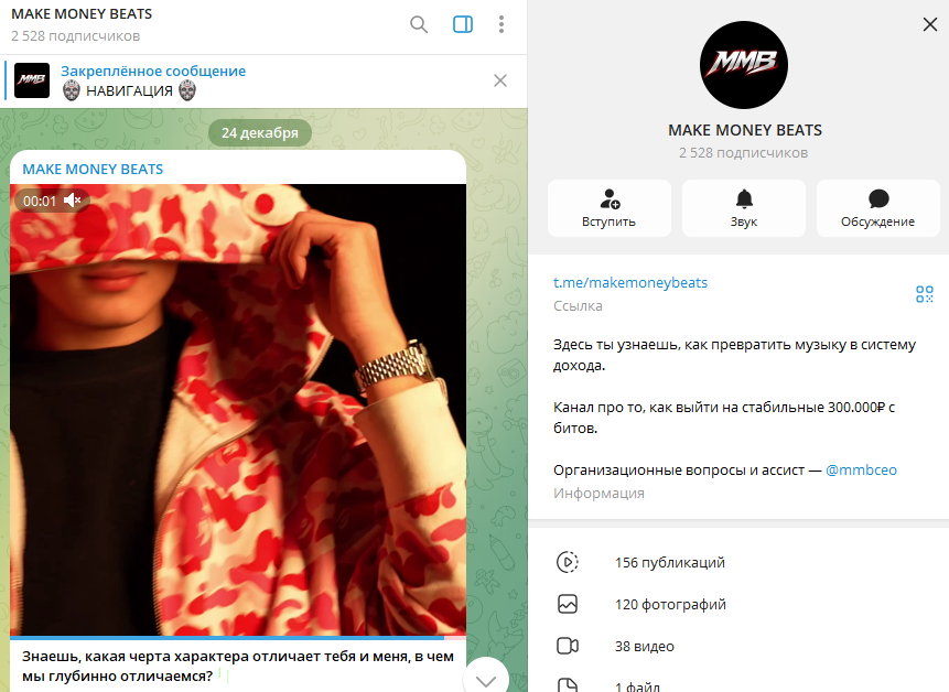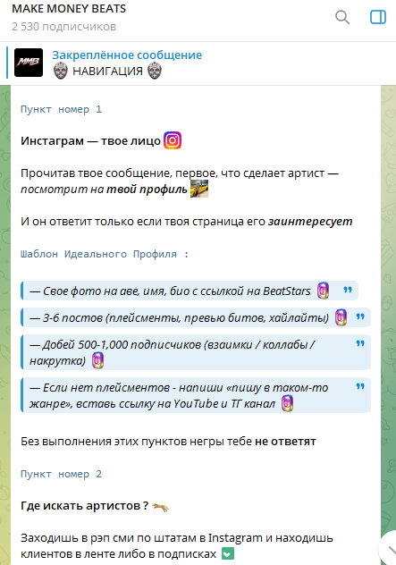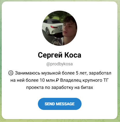 Параллельно с этим Сергей Коса продюсер активно продвигает свои услуги через Telegram-канал MAKE MONEY BEATS. Здесь он выступает в роли «главного консультанта» и обещает научить всех желающих выходу на доход от 300 000 рублей в месяц. Канал позиционируется как образовательная площадка для битмейкеров, но на деле является агрессивной воронкой продаж. Ссылки в постах ведут в личный профиль Сергея.