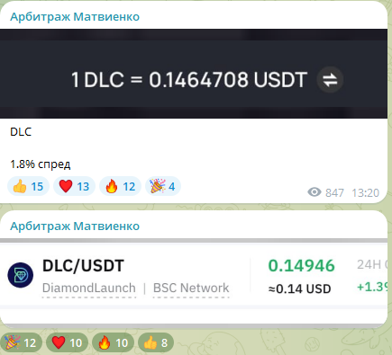 Сам канал выглядит смешно. Это просто репост из бота, который отслеживает цену криптовалют на разных биржах. Заработать можно, но это только если очень повезет. Пролететь с комиссиями и потенциальными изменениями курса гораздо выше.
