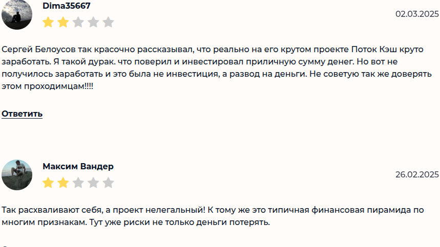 О самом лекторе фидбеков никаких нет. Зато в сети масса негатива по продвигаемой им платформе Potok Cash. Пользователи пишут, что заработать на финансовой пирамиде невозможно, так как денег у биржи нет.