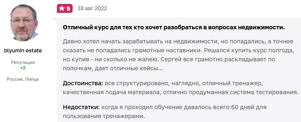 Но помимо положительных рецензий, встречаются и разоблачения курсов Смирнова Сергея «Об инвестициях и недвижимости».