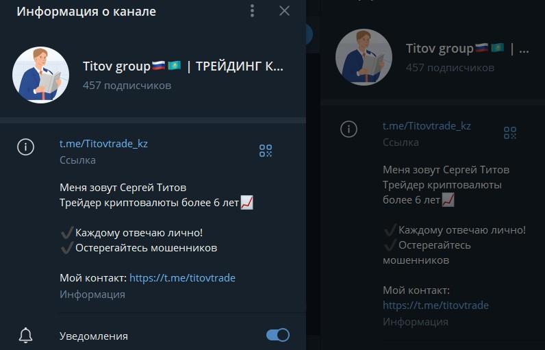 О telegram-канале Titov Group Трейдинг Казахстан Трейдинг Россия известно следующее: