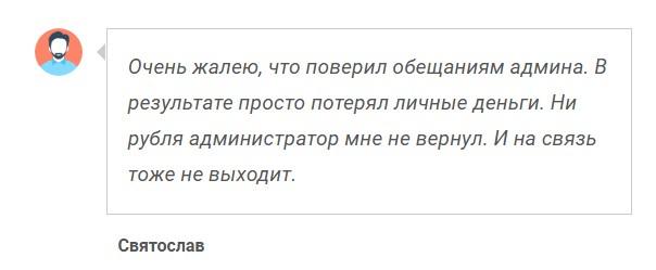 Независимые пользователи делятся отрицательным опытом. Они рассказывают что аферист просто забирает вложенные средства. В итоге никаких дивидендов и объяснений. Негативные комментарии указывают на настоящий развод. Участники проекта теряют деньги и сталкиваются с безразличием администрации.
