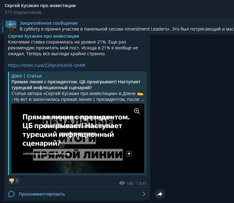 - в тг-канале Сергей Кусакин про инвестиции под публикациями часто ставят негативные реакции;