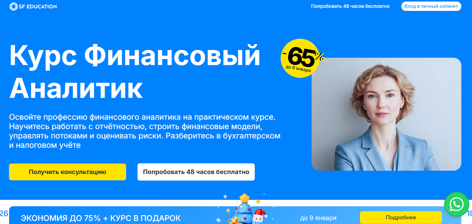 Курс «Финансовый аналитик» от онлайн-школы SF EDUCATION представлен на сайте sf education financialanalyst. Ученикам предлагается освоить профессию финансового аналитика. Также можно овладеть навыками:
