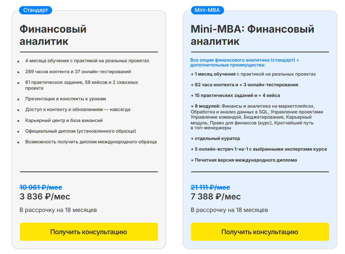 • «Финансовый аналитик Мини-МБА»: 7 388 рублей в месяц.