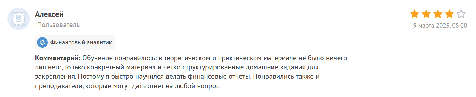 Конкретно о курсе «Финансовый аналитик» тоже отклики хорошие.