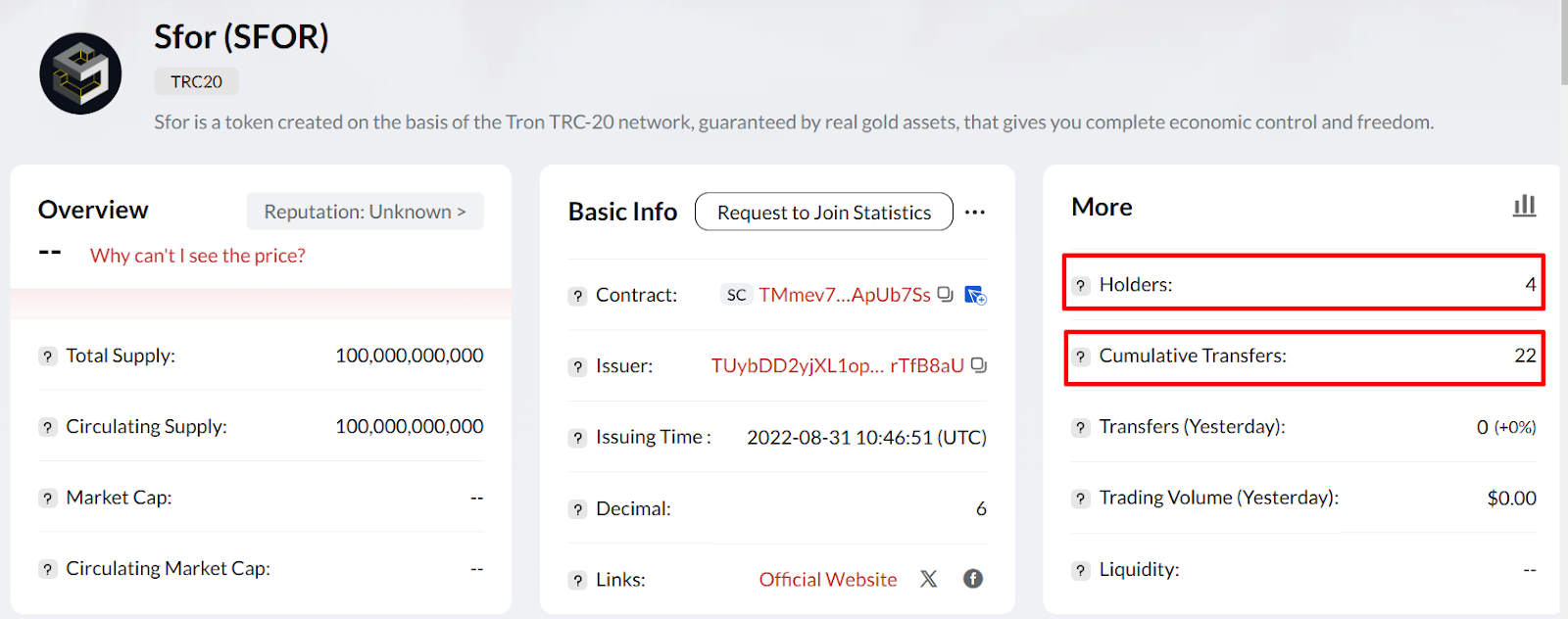 Токен запущен 31 августа 2022 года, анализ монеты через сканер показывает, что у неё всего 4 держателя и 22 транзакции на вторую половину апреля 2025 года – коин явно не пользуется популярностью, а руководители проекта не спешат активно развивать и поддерживать проект.