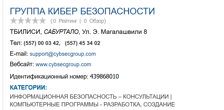- юридический адрес находится в Грузии, Тбилиси;