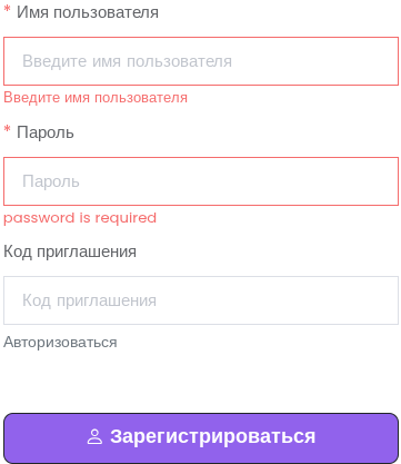 Чтобы создать учетную запись, надо кликнуть на иконку пользователя в верхнем правом углу интерфейса Sh Hrthtr45 com. Далее необходимо нажать на кнопку «Зарегистрироваться». После этого, будущий участник платформы должен указать имя, пароль и код приглашения. Без инвайта создать учетную запись не получится.