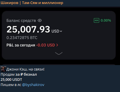 Собственно, финансовые рекомендации он заявляет нерекомендованные — формулировка без обязательной юридической ответственности, но и без прозрачных доказательств эффективности. Сведения об успехе автора — декларативные без независимой подтвержденной отчётности. Также Джони Кэш практикует покупку/продажу и обмен USDT в своем канале.