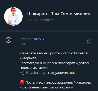 Проект Шакирова позиционируется как личный блог криптоинвестора с публичными заявлениями о заработке, но без внятных доказательств, биографических справок и результативных отчетов. Такая схема нередко встречается в полупромежуточных проектах. Признаки,на которые следует обратить внимание:
