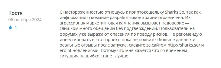 Sharks So — это криптовалютный кошелек, который в дорожной карте содержит интересные решения. Но отсутствие информации о команде проекта не позволяет оценить, насколько они смогут с ними справиться.