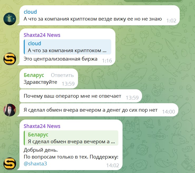 Мы сделали обзор бота в «Телеграмм» Shaxta24 Bot, изучили работу этого обменника и отзывы.
