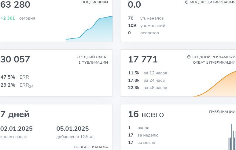 Выше мы писали про то, что на количество подписок опираться не стоит и про сходство с другими каналами. Теперь объясним детально. Наша редакция проверила проект через TGStat и выяснила следующую картину: