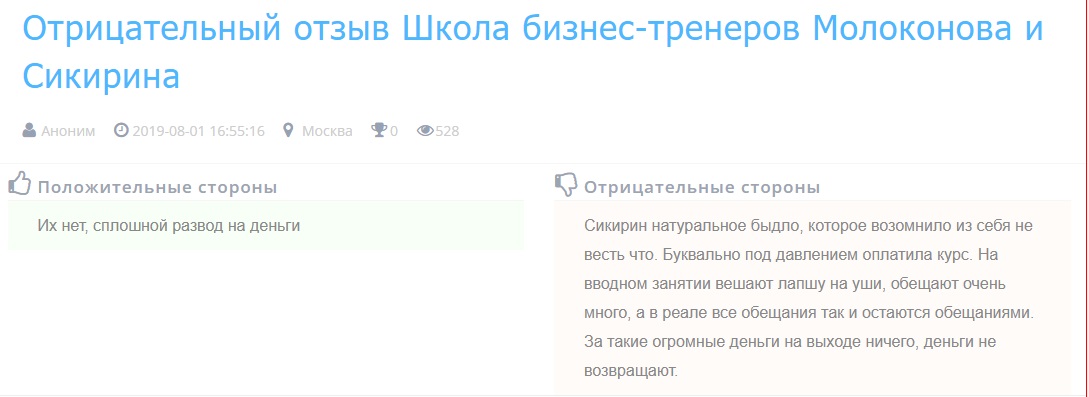 Школа Бизнес Тренеров Молоканова И Секирина Отзывы (2)