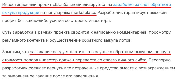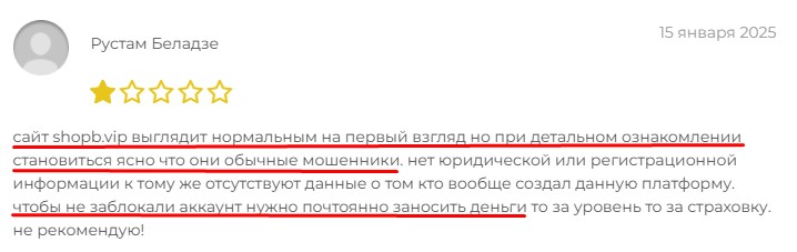 Клиенты сообщают, что представители шопб обещают 10% от чистой прибыли при выполнении задания. Однако пользователи сервиса shopb vip указывают на прекращение выплат после третьей сделки и блокировку профиля.