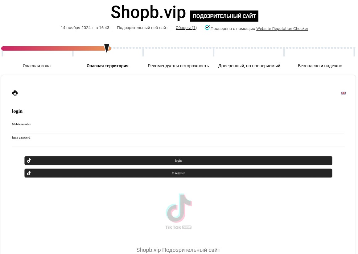 На специализированных форумах пользователи могут ознакомиться с торговыми услугами платформы. Например, клиенты сообщают о необходимости покупки товара с последующим обзором. Дополнительно требуется платить за задания и уровень аккаунта на сайте. Но инвесторы не сообщают о стоимости услуг.Клиенты могут проверить безопасность сайта шопб вип в специализированном сервисе. Например, веб-ресурс shopb отметили как подозрительный для финансовых операций.