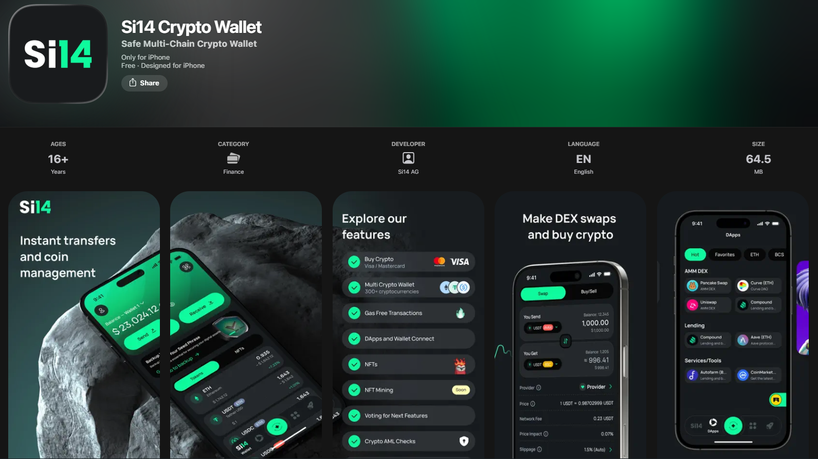 Si 14 представляет собой кошелек для хранения криптовалюты, а также NFT. Он обладает высоким уровнем безопасности, относится к некастодиальному типу и связан с несколькими сервисами. В этой статье мы рассмотрим, стоит ли пользоваться «Си14», безопасен ли он и какие преимущества получает пользователь.
