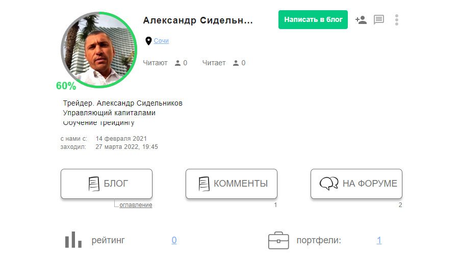 Деятельность трейдера Александра Сидельникова не привлекает значительного внимания интернет-пользователей. Его блог на Смартлабе заблокировали 5 человек. Это свидетельствует о том, что его курсы и услуги не интересуют пользователей.