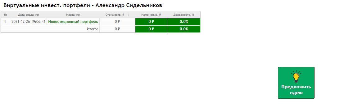 - Нулевой инвестиционный портфель.