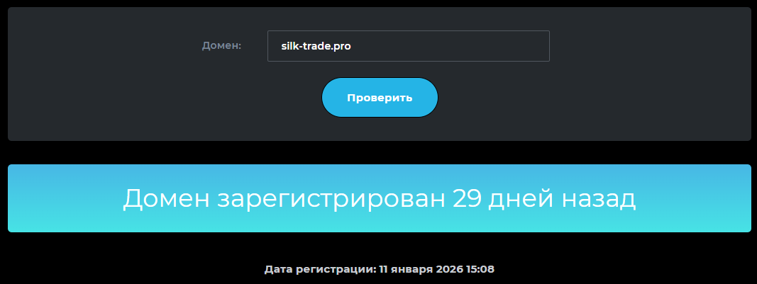 Окончательно разработчики выдают себя, когда указывают 2021-й год как начало работы их ресурса, ведь это легко опровергнуть. Заходим на сайт проверки возраста домена и узнаем, что платформе нет и месяца.