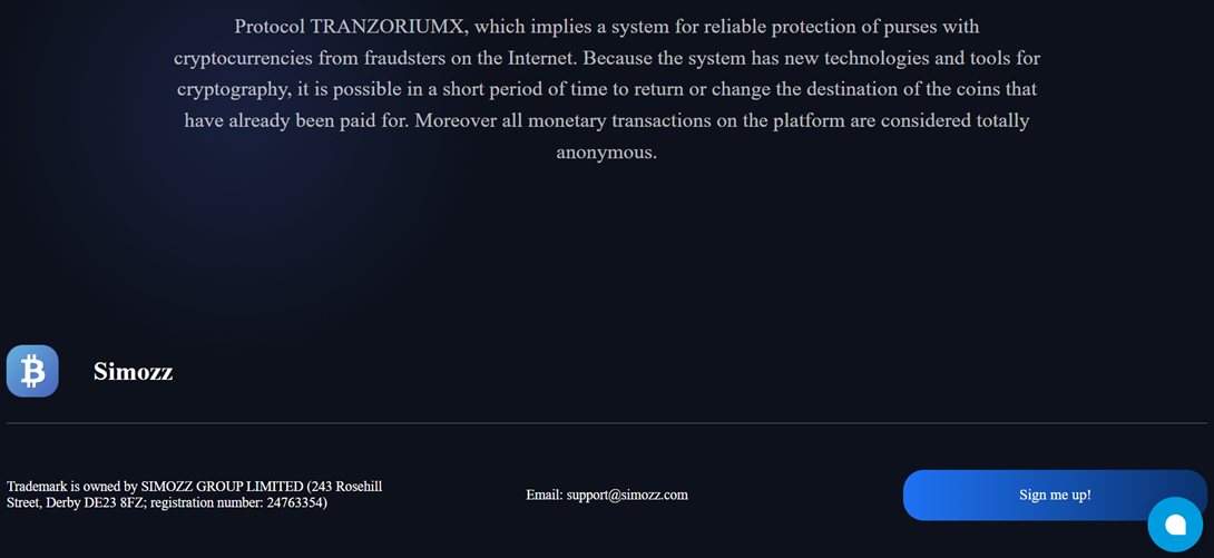 Проверка показывает, что сайт был зарегистрирован 5 марта 2024 года, но обновлен 3 февраля 2025 года. Указанная электронная почта для связи с технической поддержкой – Support simozz com, является рабочей. Также связаться с представителями компании можно с помощью онлайн-чата на самом сайте.Создатели указывают, что кошелек можно использовать для различных децентрализованных бирж и P2P сервисов. Транзакции проводятся максимально быстро и безопасно. Здесь нет необходимости в верификации. Регистрация требует указать только адрес электронной почты. Упоминается наличие реферальной программы. Ввод средств и вывод финансов осуществляется автоматически. Кошелек является самообслуживаемым.