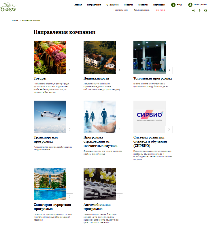 Второй сайт конторы oneshopw ru — инвестиционный проект для тех, кто вступил в Академию. Компания Ван Шоп Ворлд занимается следующими направлениями: