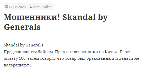 Граждане в сети оставляют негативные комментарии о scam-shop под названием «Скандал Бай Дженералс».