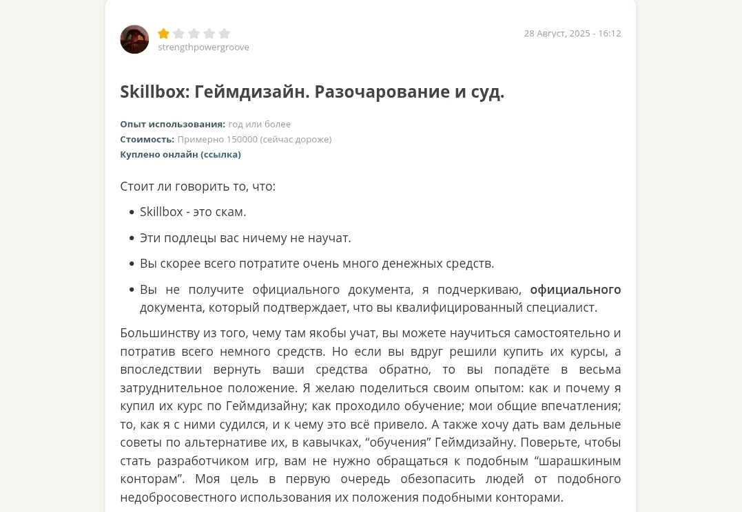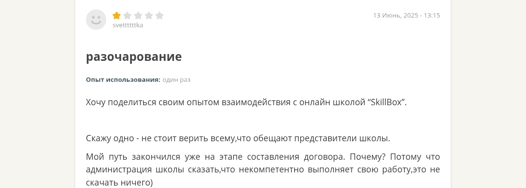 Отзывы о курсе Skillboks AI Креатор в независимых источниках встречаются лишь негативные. Отдельные студенты сообщают, что информация, которую они получили на курсе, в значительной мере доступна бесплатно на YouTube и в документации самих нейросетей. Также называют команду подлецами и отмечают зря потраченные деньги.