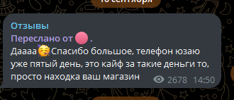 Реальных отзывов о работе ТГ магазина очень мало. Все они негативные, клиенты говорят о мошенничестве. Товар не отправляют, после оплаты просто блокируют пользователя.
