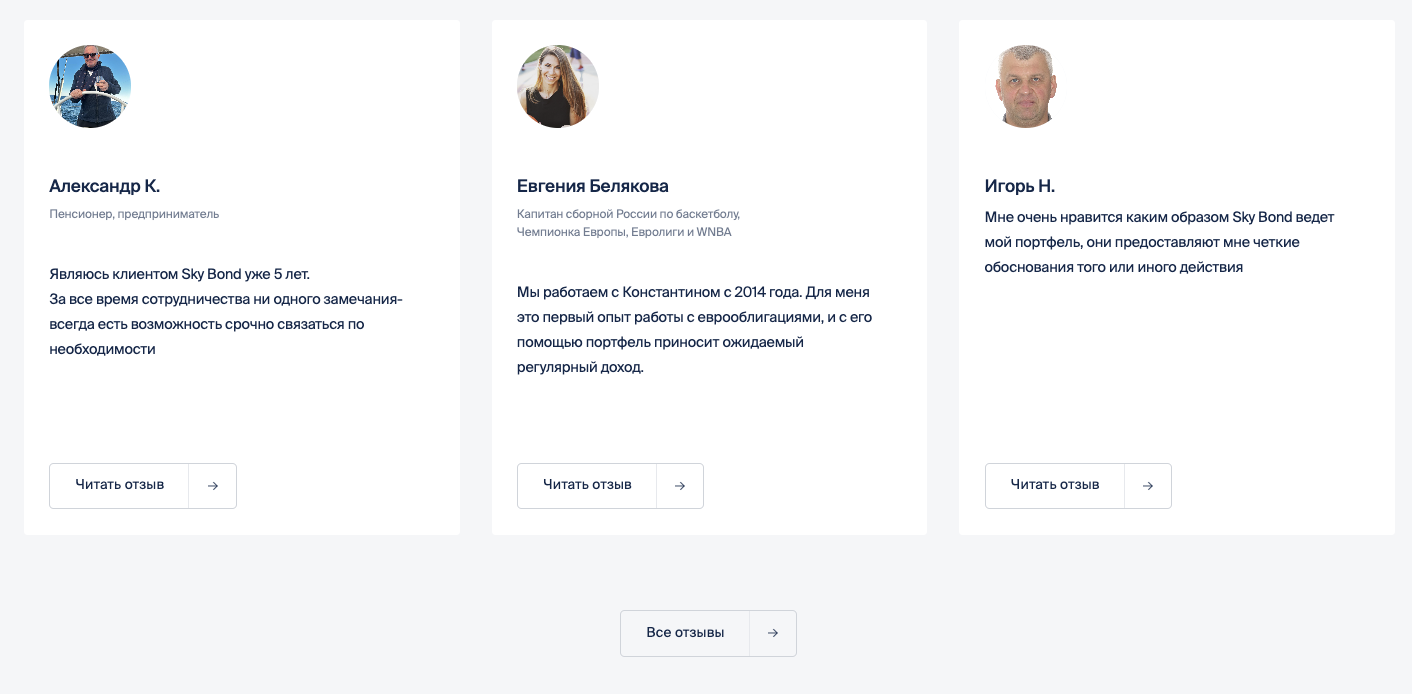 Отзывы на SkyBond есть на самом сайте компании. Среди представленных ревью мы нашли одно любопытное.