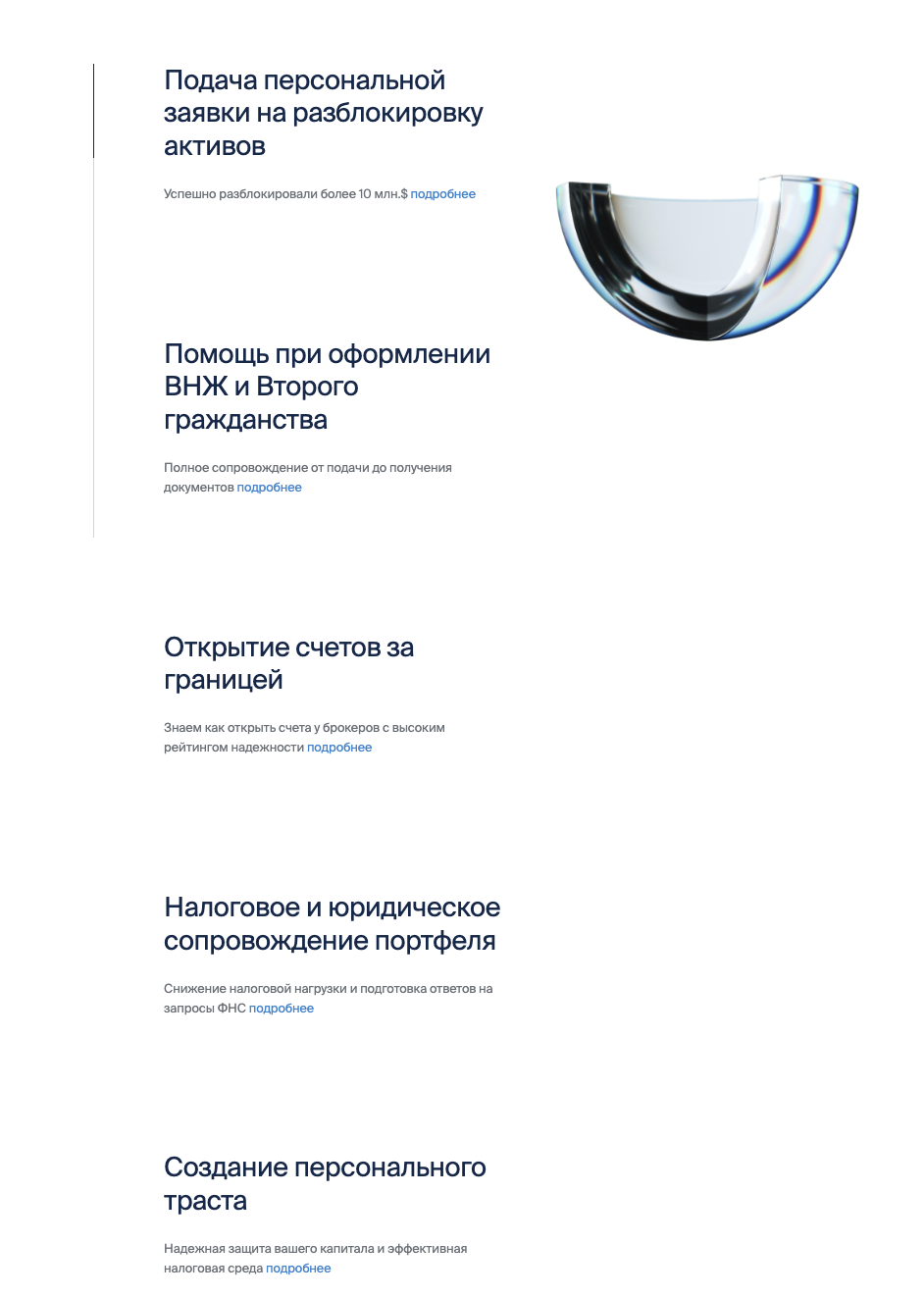 Инвестор предлагает широкий перечень услуг, связанных с европейскими инвестициям. Он в том числе оказывает поддержку при оформлении вида на жительства и второго гражданства.