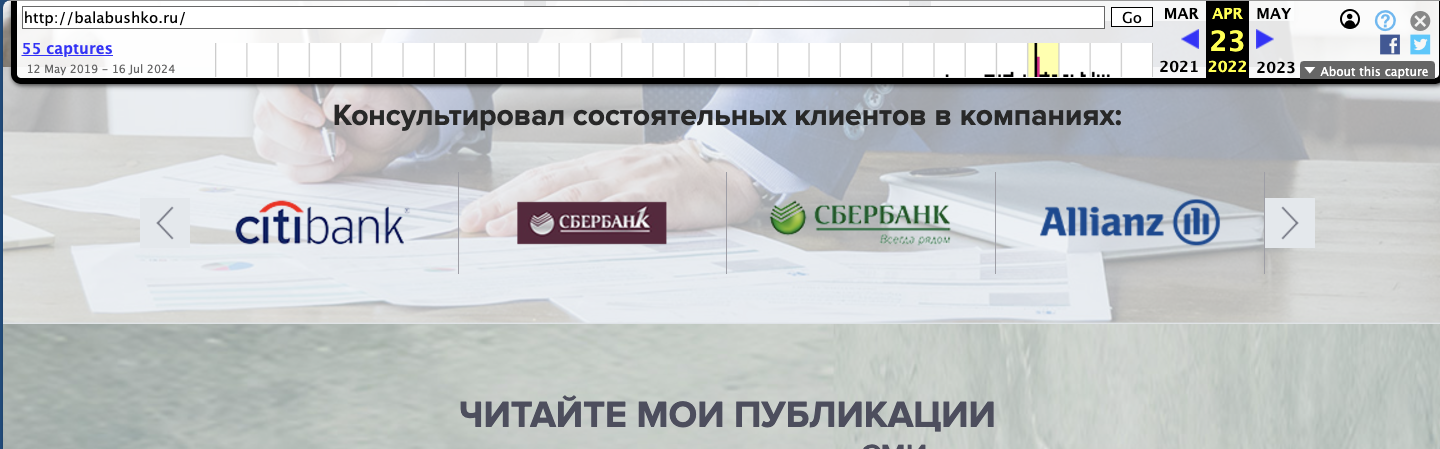 Также мы запросили снимки сайта SkyBond Group из WayBackMachine. Из сделанных снэпшотов следует, что на протяжении всего времени существования домена по нему находился ресурс компании Sky Bond Group.