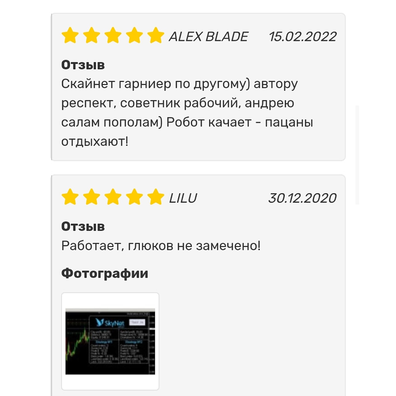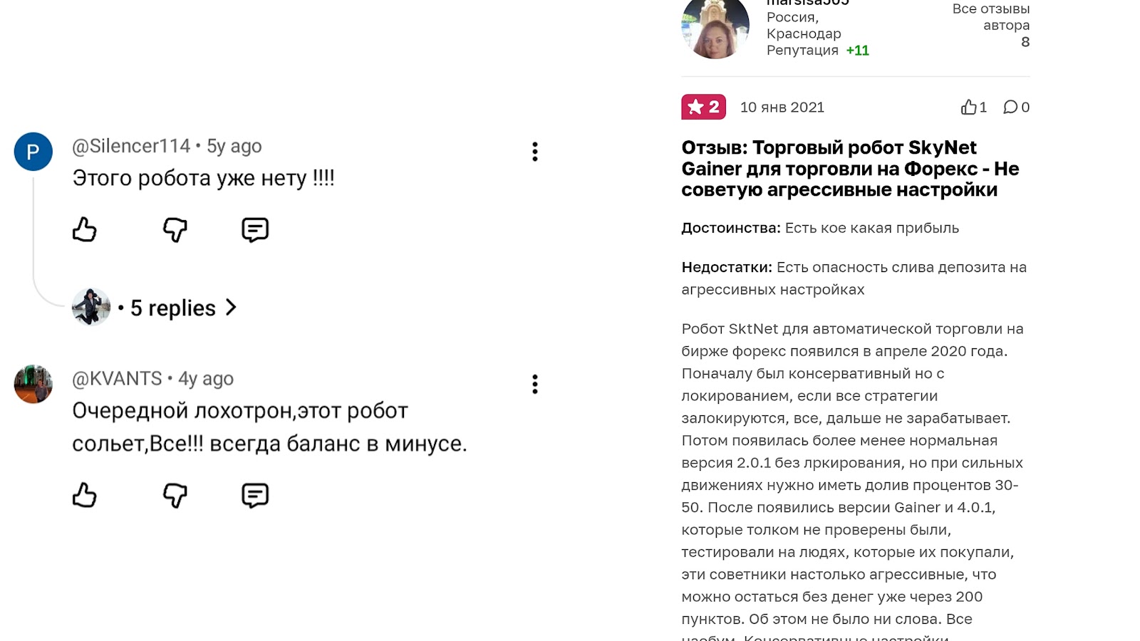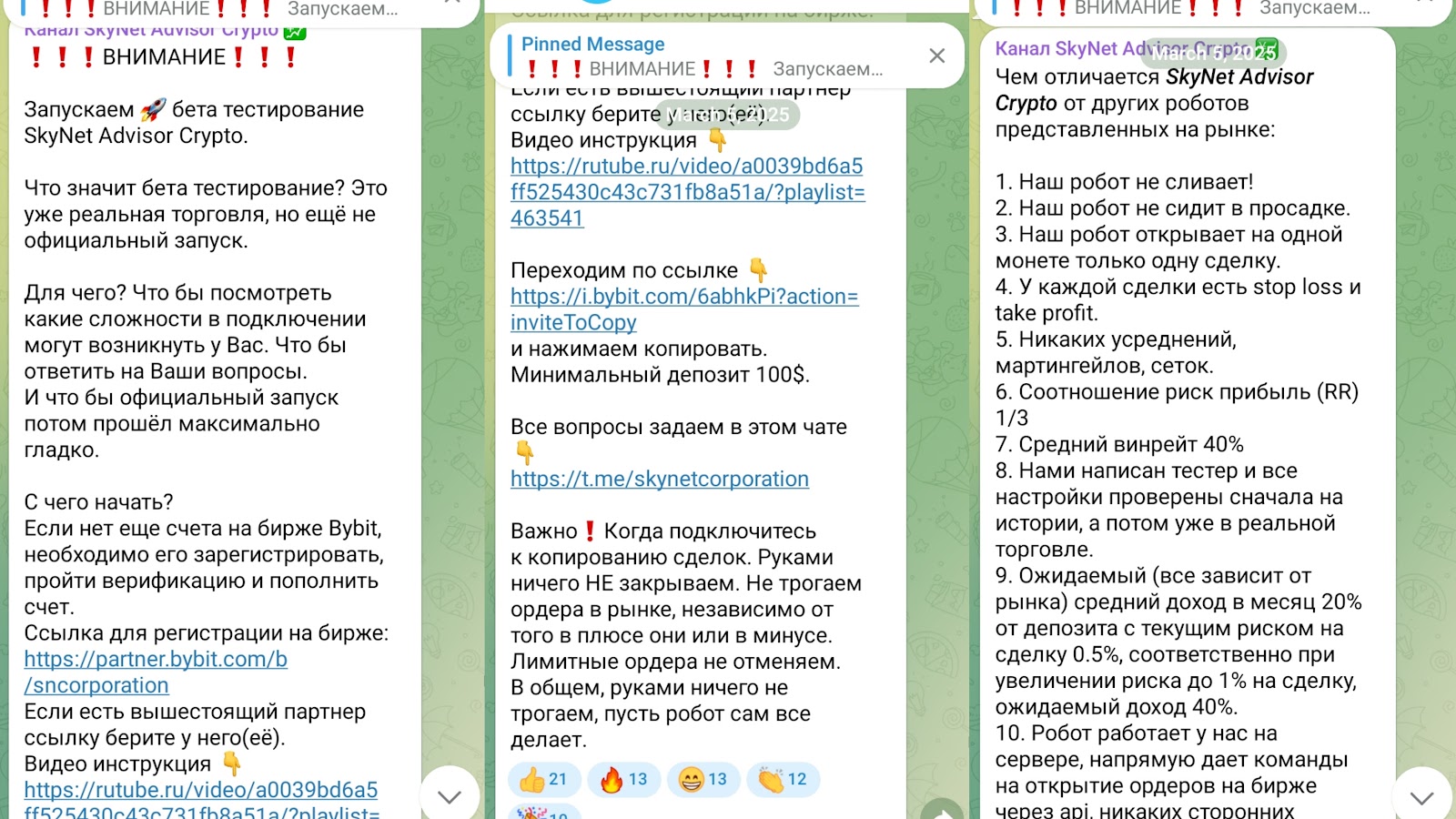У проекта Skynet нет лицензии, и для подключения к роботу основатели требуют проходить регистрацию на бирже по своему промокоду. Многие пользователи слили депозиты из-за советника, и к другим важным моментам о нем мы отметили: