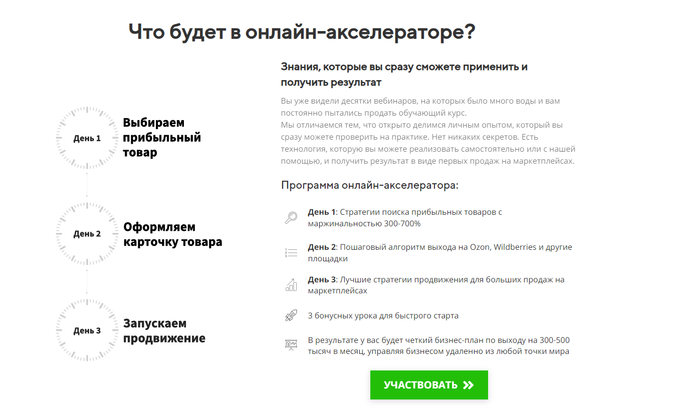 Продает за деньги, то что и так понятно. Его уникальная схема работы на маркетах, это правила регистрации как продавца. Правда. Больше ни чего полезного на курсе не было. Опять выкинутые на ветер деньги.