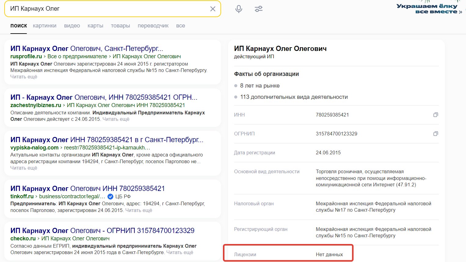 - У ИП Карнаух Олег нет подлинных лицензий или других документов. Это опасно тем, что работа с таким коучем может быть не зарегистрирован в ЦБ РФ и при вашем обмане, он не понесет никаких наказаний.