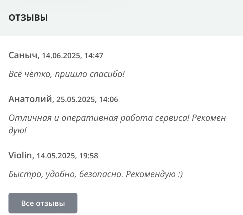 Если вы меняли деньги через эту платформу, оставьте под этим обзором собственный отзыв на Smartmoney, чтобы другие пользователи могли получить более обширную информацию по сервису.