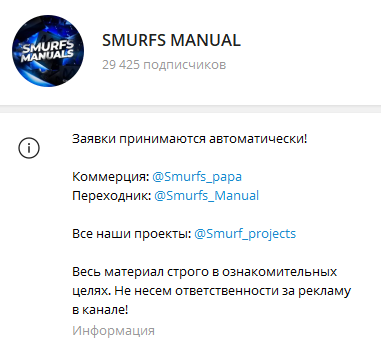 Smurfs Manual — телеграмм-канал с сомнительной репутацией. Он предлагает своим подписчикам нелегальные способы заработка с использованием мошеннических схем. И хотя в сети встречаются о нем положительные отзывы, следуя рекомендациям автора, можно получить серьезные проблемы с законом. Разбираемся, можно ли доверять советам «Смурфс Мануал», или это развод.