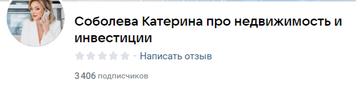 У Катерины имеется и блог в ВК Soboleva_katerina, здесь подписчиков почти 3500. Здесь можно найти рекламу обучения, просмотреть эфиры с анализом ипотечного рынка, изучить комментарии пользователей и понять, чему учит автор.